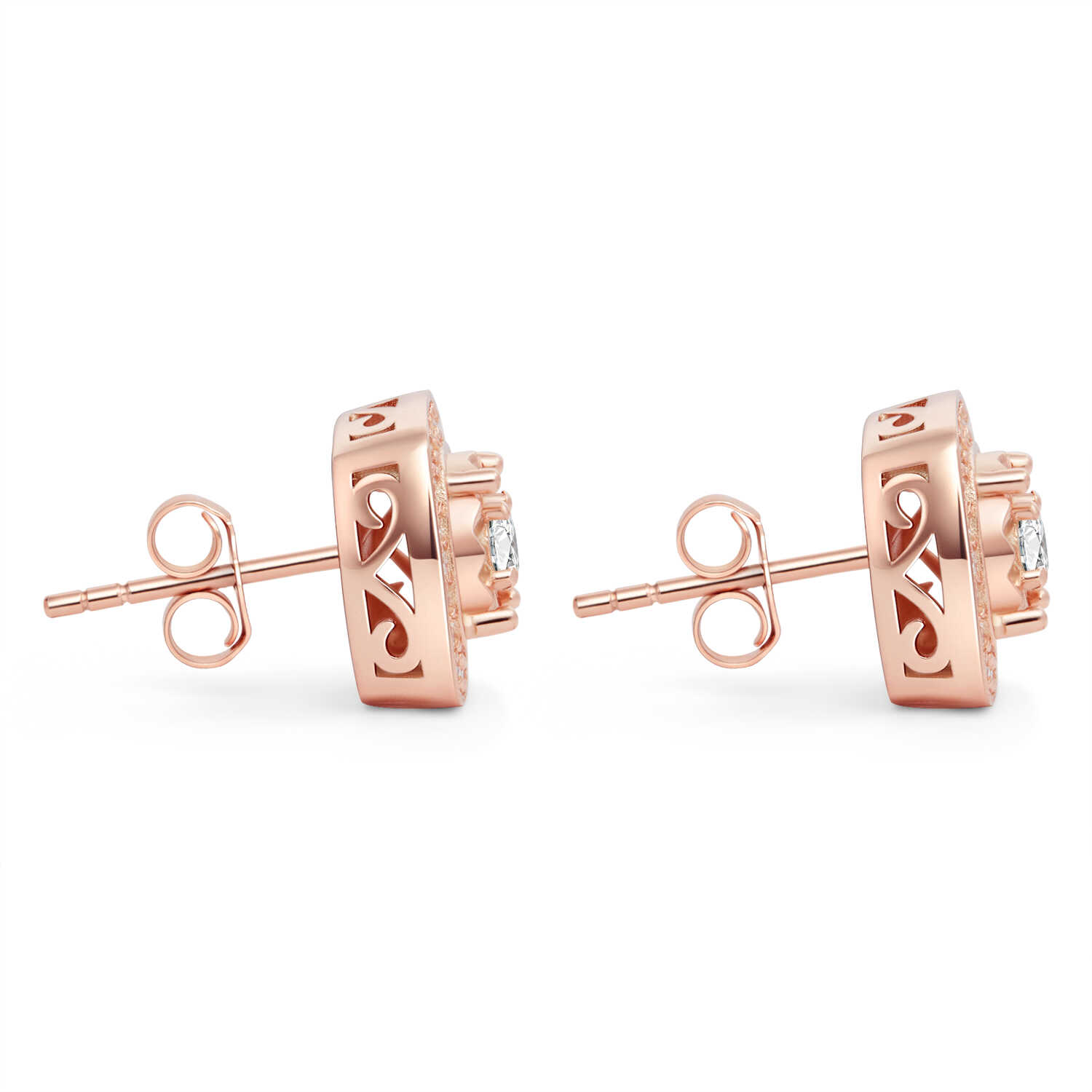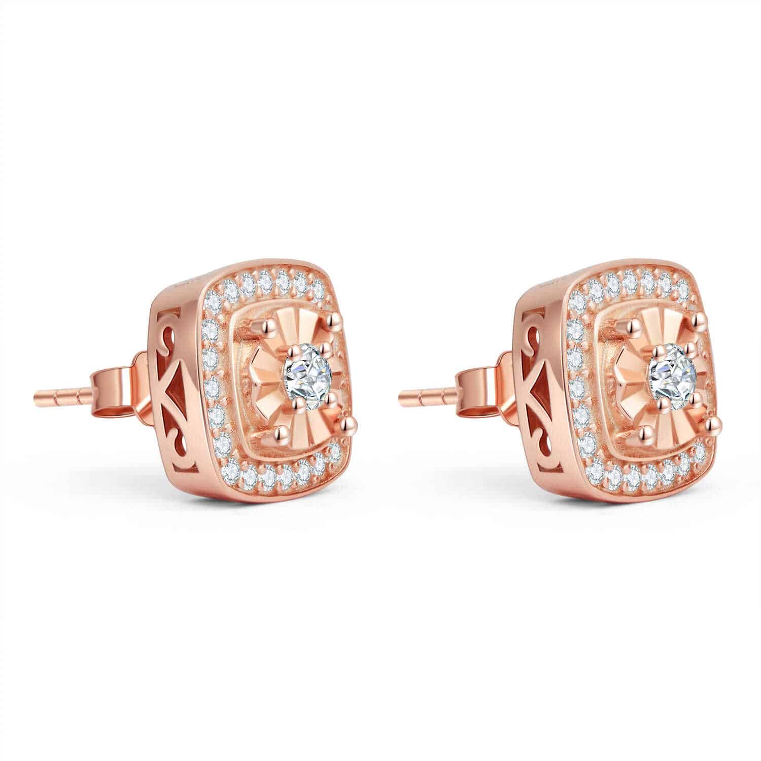 העגילים מכסף 925 מצופה זהב רוז 14 קראט, בהשראת יונת השלום המחזיקה ענף זית ירוק ואצילי