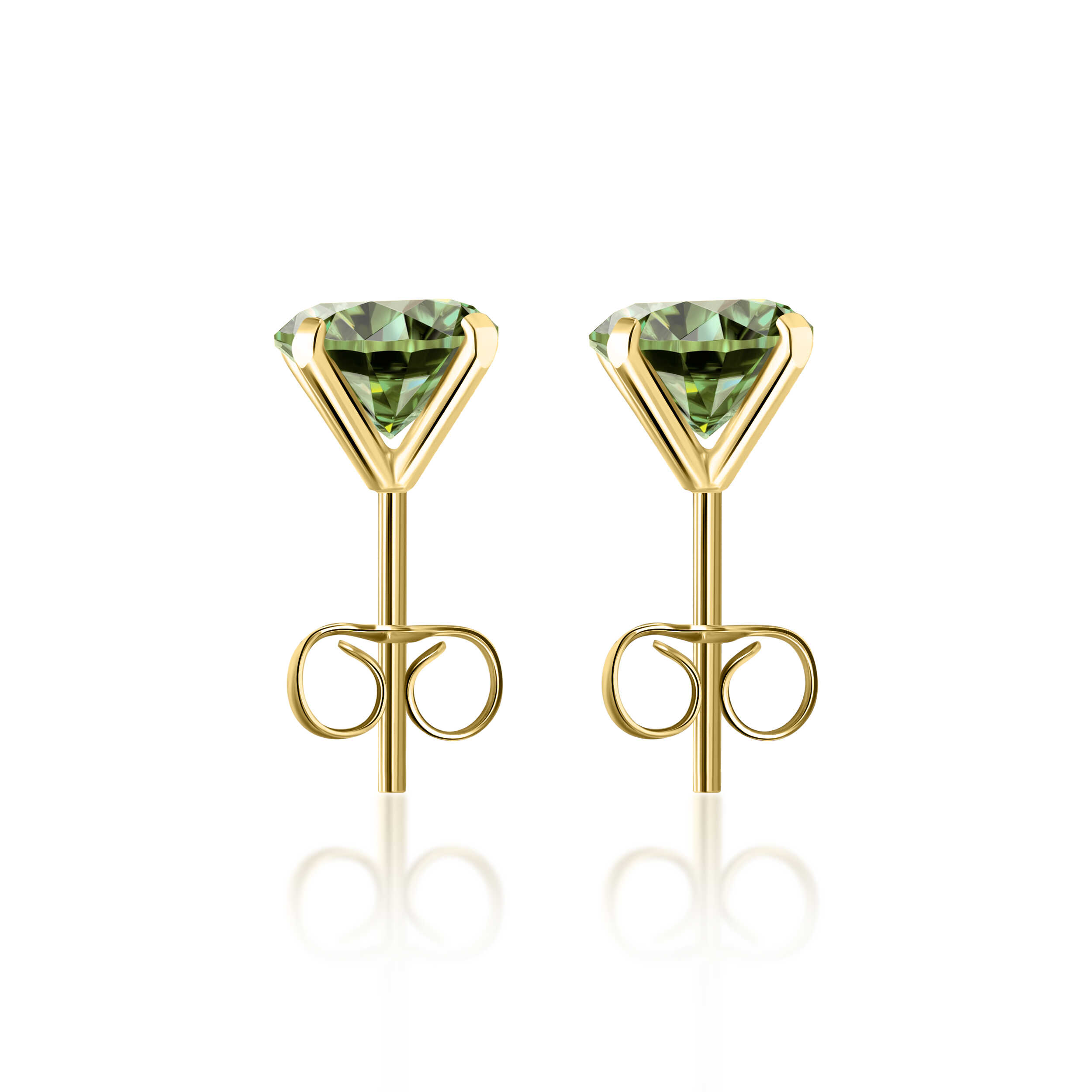 עגילי סוליטר ירוקות קראט לכל צד אבני מואסנייט יוקרתיות בצבע ירקרק מרהיב,