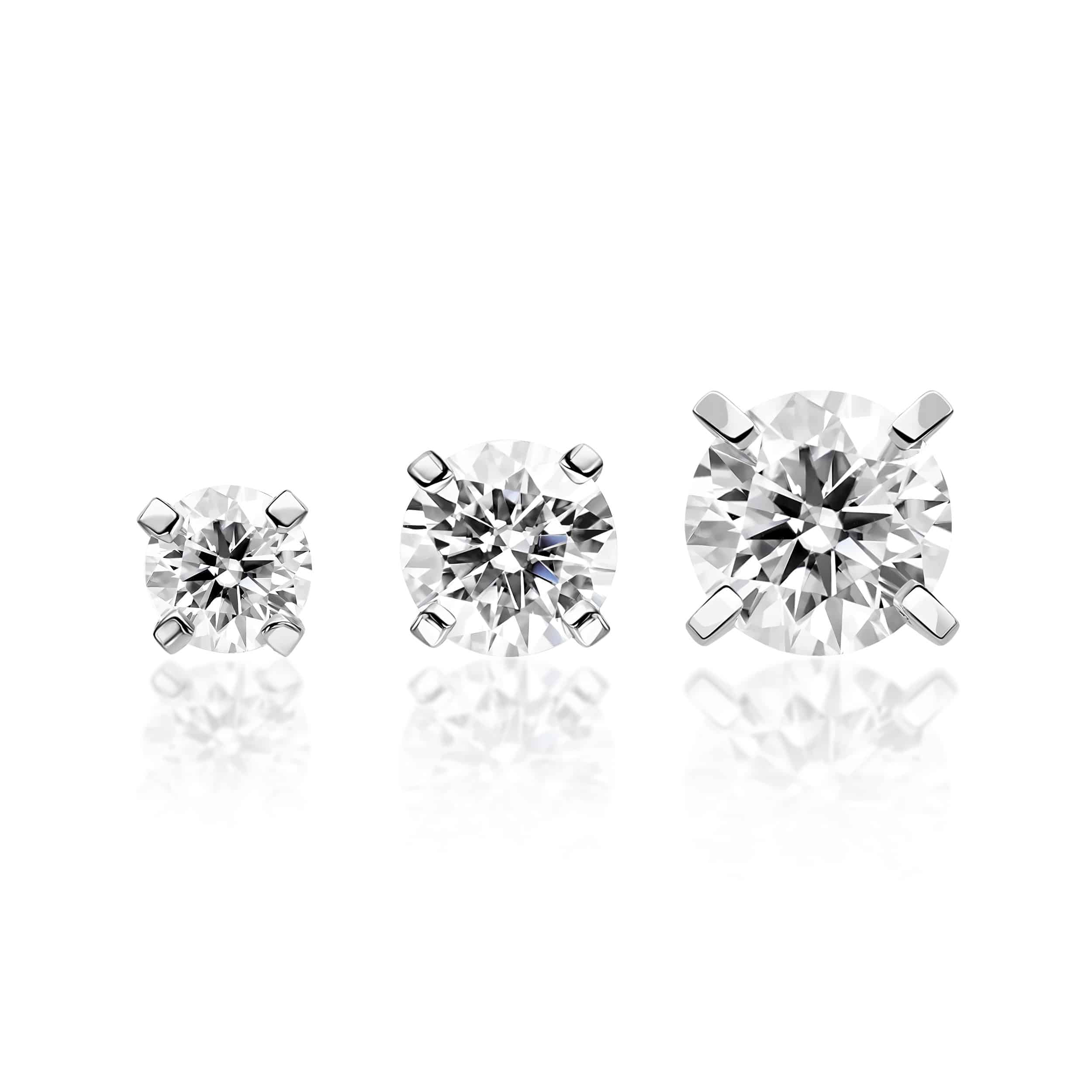 מבחר עגילי סוליטר יוקרתיים המגיעים עד שלוש קראט לכל צד, העגילים עשויים מזהב 14 קראט